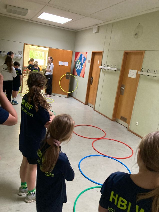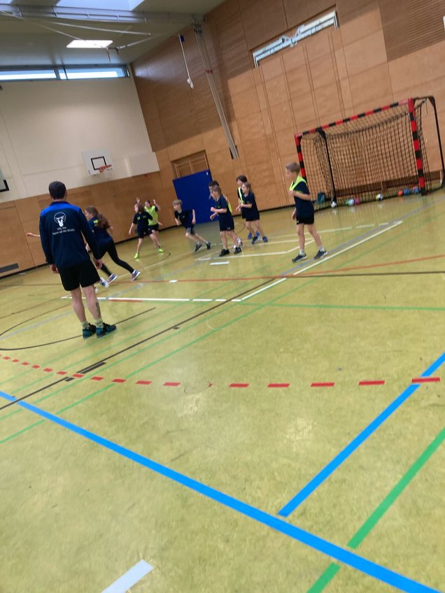 Am ersten Tag, fast schon traditionell, begann wir nach der Begrüßung mit verschiedenen Handballübungen und vielen Handballspielen unter der Beobachtung von Markus und Fische. Die teilten im Anschluss die fast 40 Kids in drei homogene Gruppen ein.
