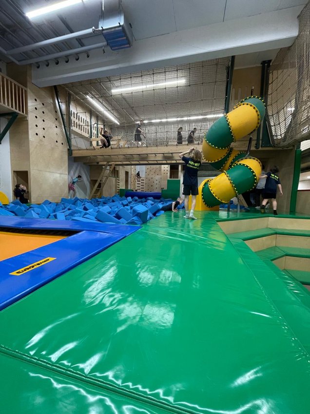 Tag zwei begannen wir mit einer kurzen Bahnfahrt zum Vitadrom in Feuerbach. Denn hier befindet sich die VitArena, die Bewegungslandschaft der Sportvereinigung Feuerbach. Nach dem Umziehen und kurzer Einweisung ging es los mit hüpfen, bouldern, balancieren und natürlich waghalsigen Sprüngen in die Schnitzelgrube.